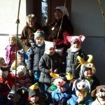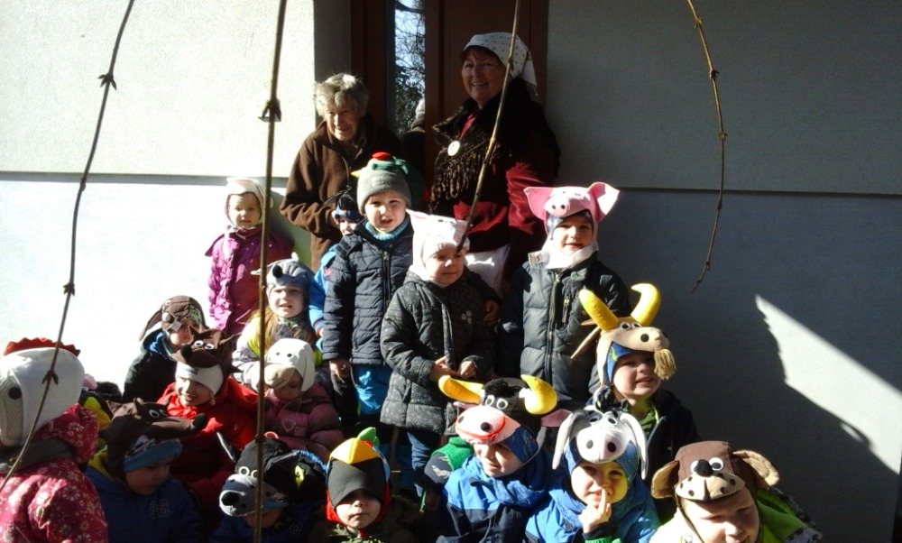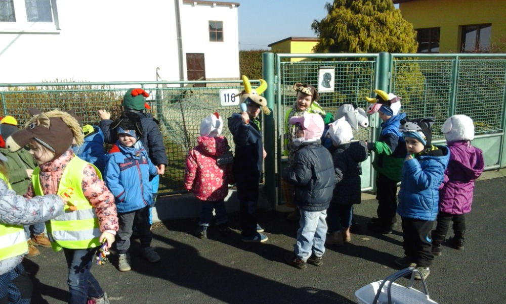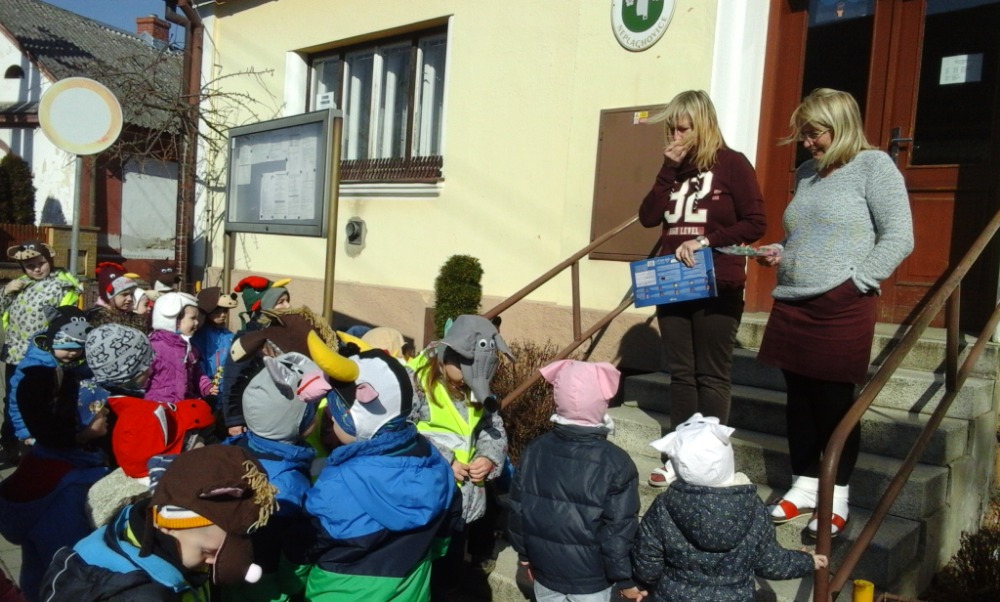 Letošní dětský masopustní průvod, 28. února, byl ve znamení zvířátek, v jejichž čele kráčela babička Jana. Jelikož nás po celou cestu provázelo sluníčko a každý se za dětmi otočil s úsměvem, nálada byla výborná. Průvodu se sice nepodařilo obejít všechny domy a potěšit masopustní básničkou, i tak byly košíky s jitrničkami a muffinkami za chvíli prázdné. Vlastně nebyly, protože si kluci a děvčátka u všech navštívených dveří vykoledovaly také „něco do košíčku“. Děkujeme všem, kteří před průvodem nezavřeli dveře a byli ochotni s námi strávit kousek čtvrtečního dopoledne. Poděkování paní i panu Lukáši Gebauerovi, který nám zasponzoroval jitrničkové pochoutky.