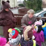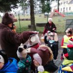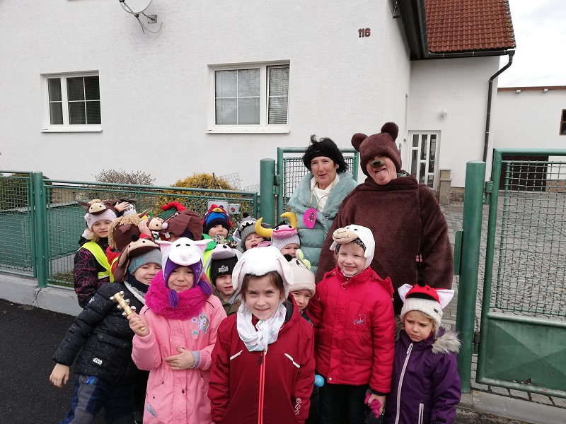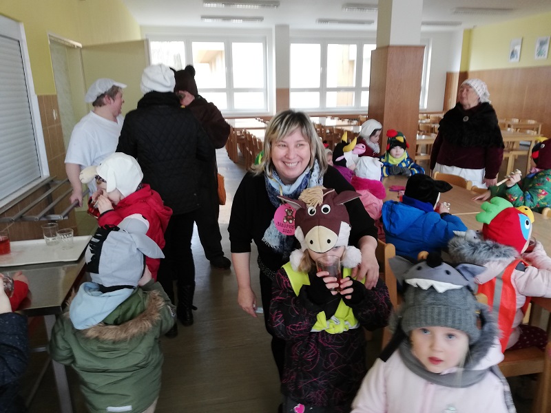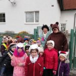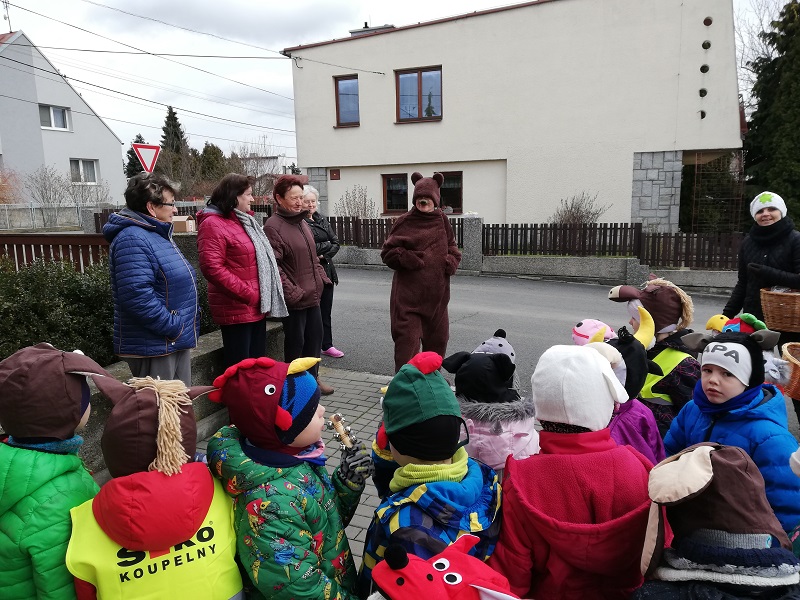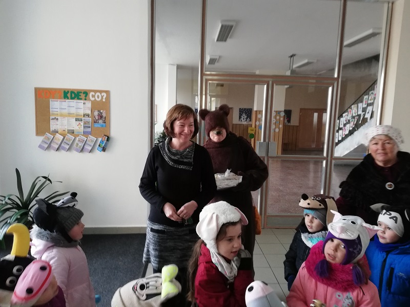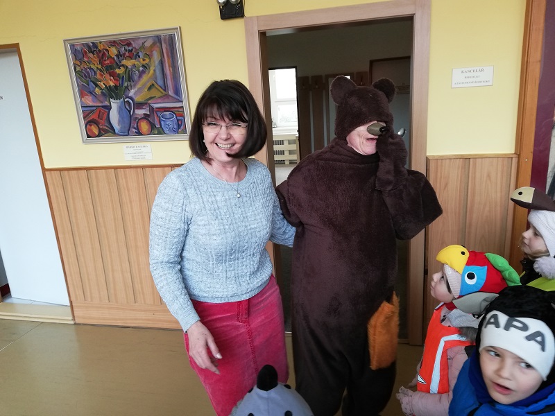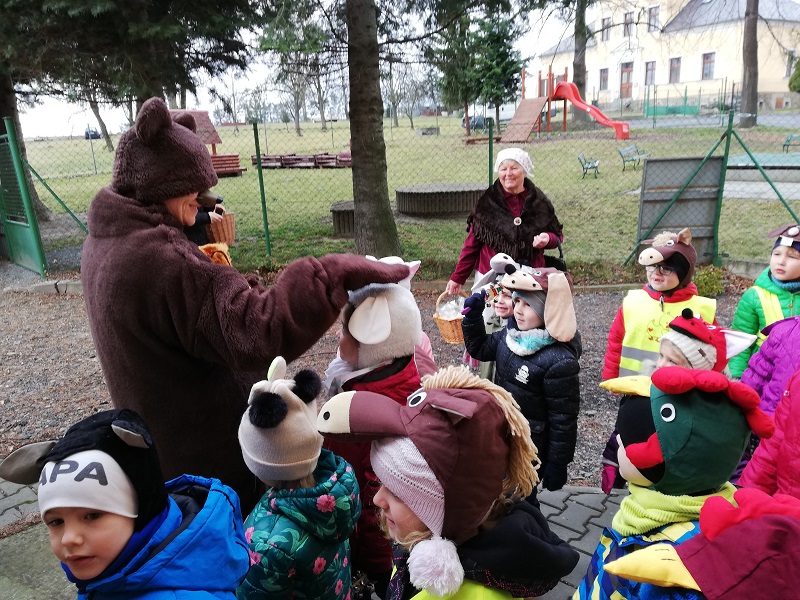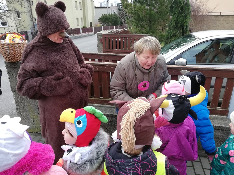 V letošním školkovém masopustním průvodu si děti přály medvěda. Najít medvěda v Neplachovicích není tak jednoduché. Na radu kluků a děvčátek jsme se 17. února vydali na zámek, kde opravdu zimním spánkem odpočíval medvěd. Byla potřeba jej nejdříve probudit a nasytit sladkým medem. Potom už bylo jednoduché přemluvit jej, aby si s dětmi zahrál hry a hlavně, aby se 26. února přidal ke školkovému masopustnímu průvodu vesnicí. A věřte, že medvídek nezklamal. Děkujeme všem, kteří si s námi dopoledne užili, nevyděsili se tanečku s medvědem a obdarovali děti bohatou výslužkou. Jedno speciální poděkování patří babičce Janě, bez které bychom si náš masopust neuměli představit.