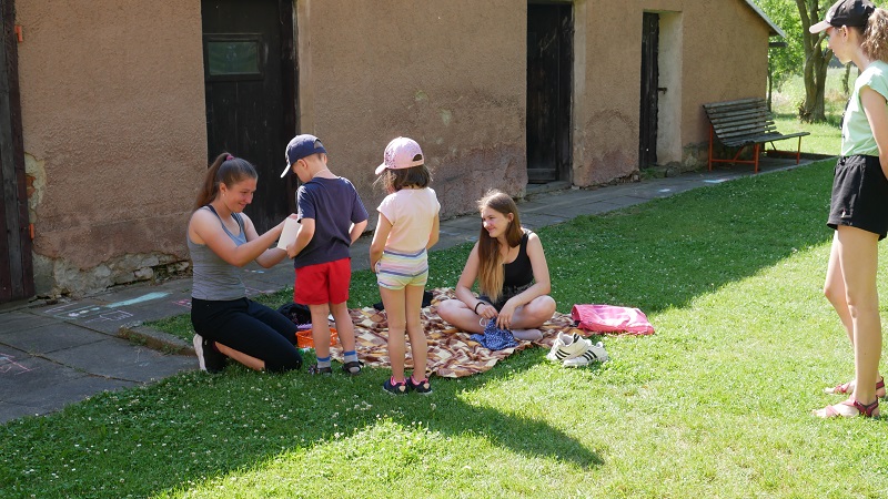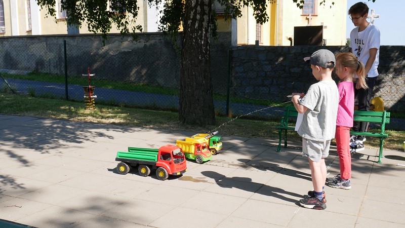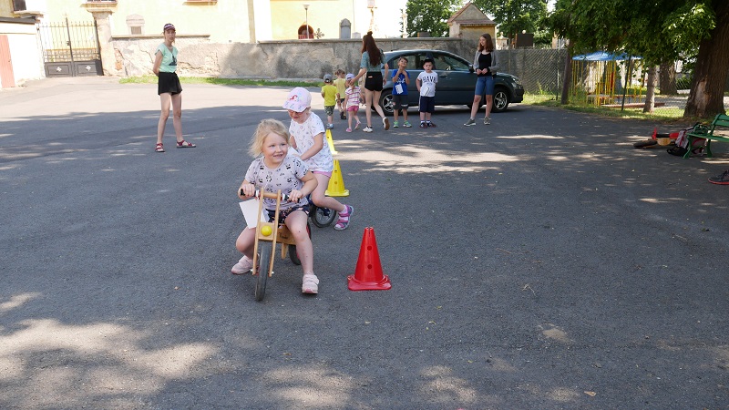 V pátek 28. června se v naší mateřské škole uskutečnil Den dětí. O program pro školkáčky a předškoláky se perfektně postaraly paní učitelky z mateřské školy. Akce se také účastnila skupinka vybraných žáků devátých tříd pod dohledem paní učitelky Vaňkové. Pro předškoláky byla stanoviště lehce upravená tak, aby zapřemýšleli, ale zároveň se bavili. Na stanovištích poté vše obstarávali deváťáci a děti si všemi stanovišti prošly. Jako úkoly je čekalo skládání puzzle, zapamatování předmětů či slalom na odrážedlech a spousta dalšího. Za každý splněný úkol si děti odnesly jednu nálepku do jejich “průkazu” a na konci je za splněné úkoly čekala zasloužená odměna. Závěrem úspěšného dne jako poděkování přednesli předškoláci deváťákům skvěle připravené básničky. Vše se završilo fotbalovým utkáním mezi školkáčky a žáky ZŠ, kde nás nadějní malí fotbalisté porazili ve skóre 3:0. Myslím si, že budu mluvit za všechny, když řeknu, že si všichni tuto akci s radostí a úsměvem i přes úmorné vedro užili :).