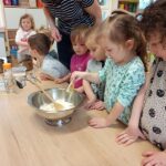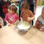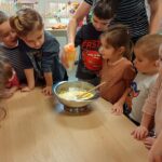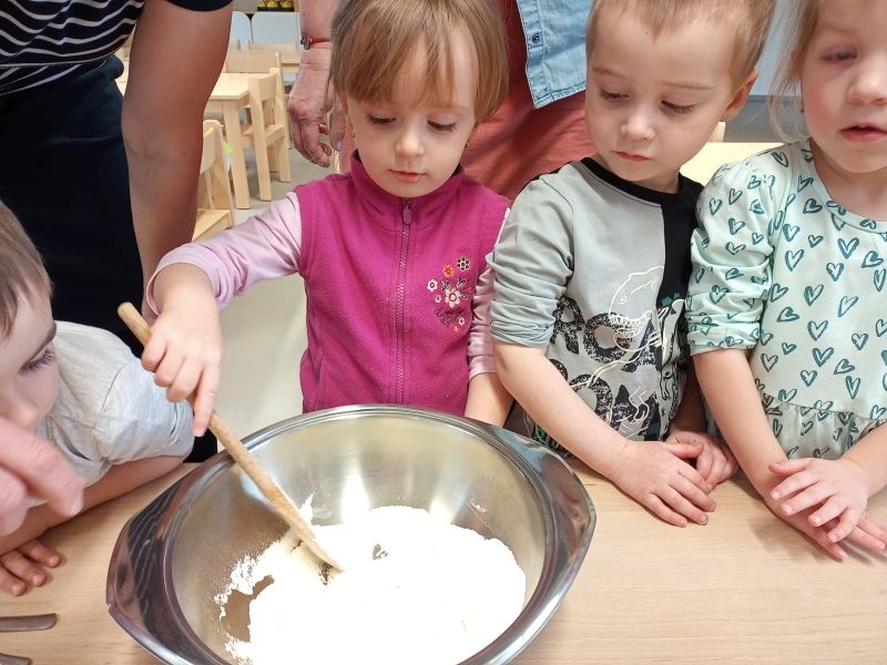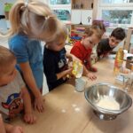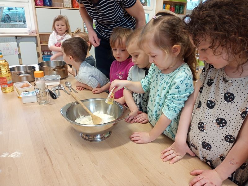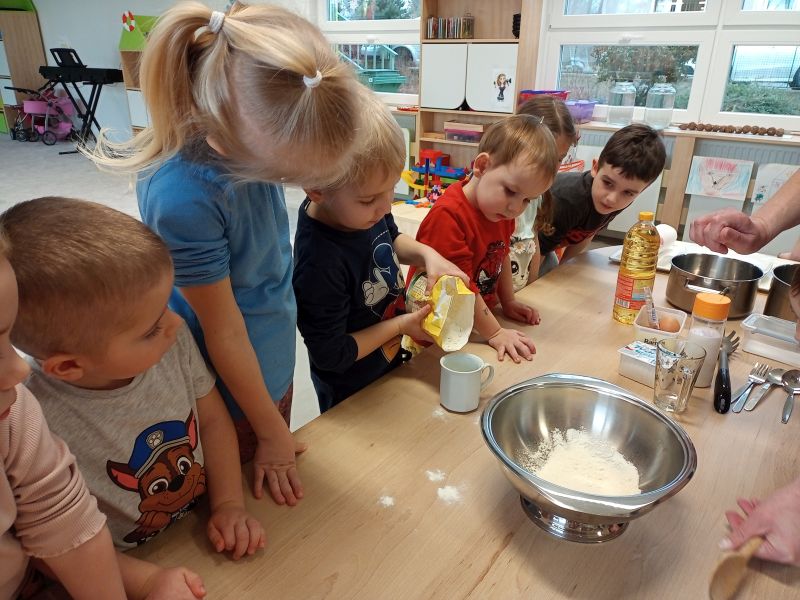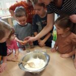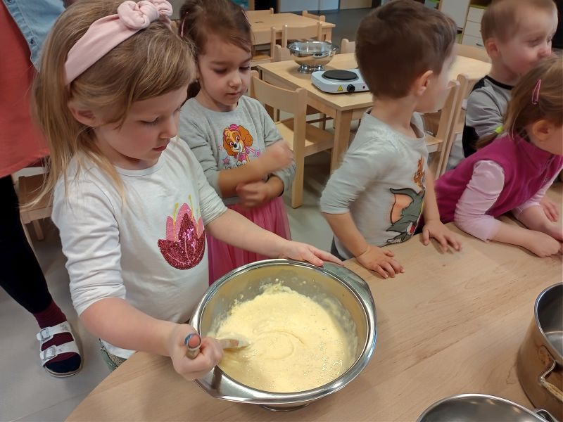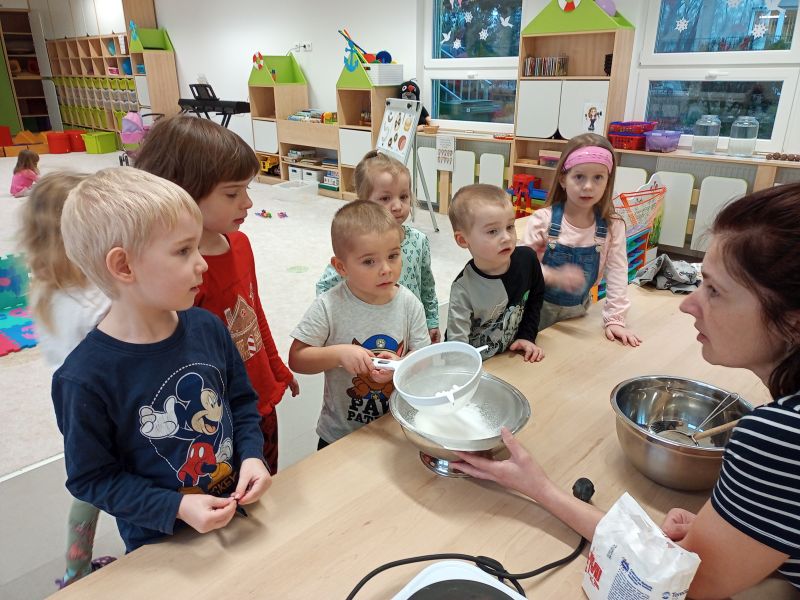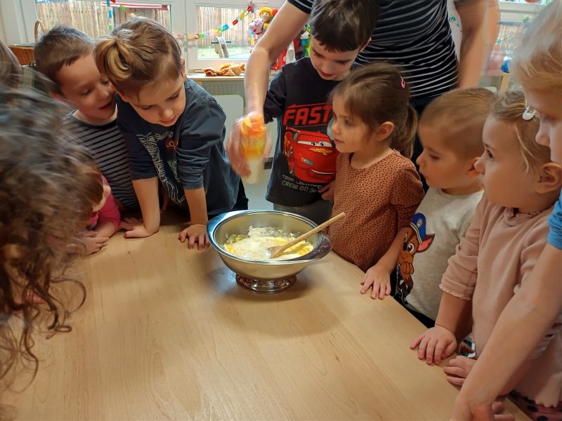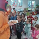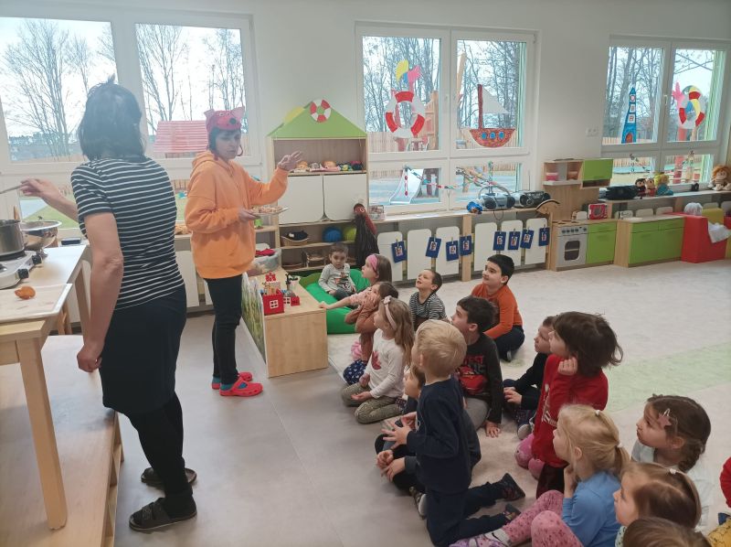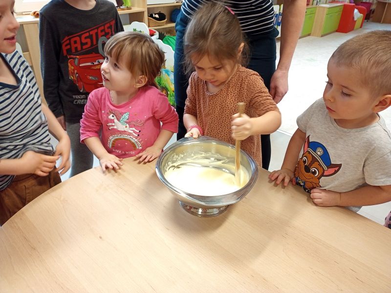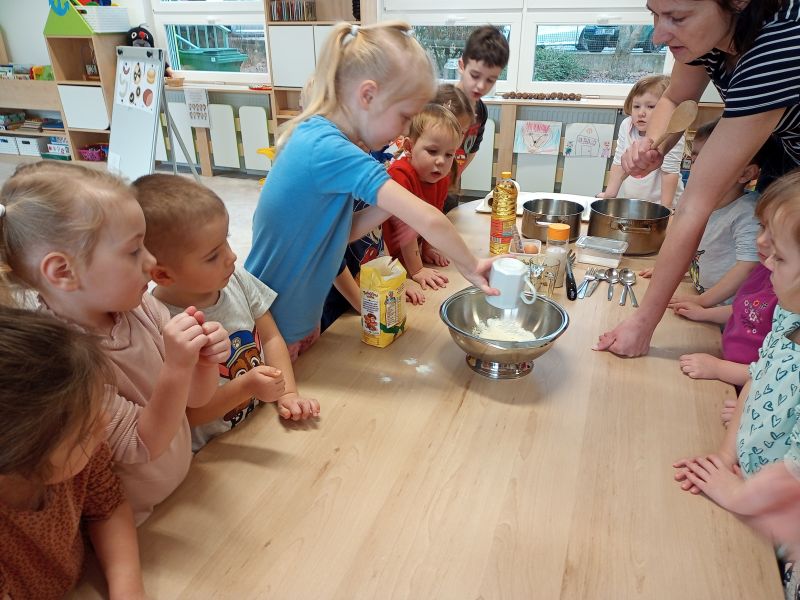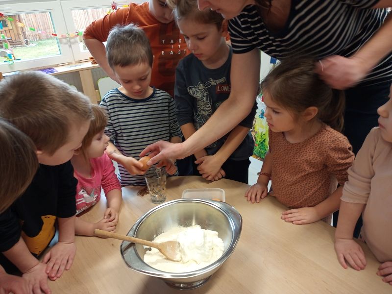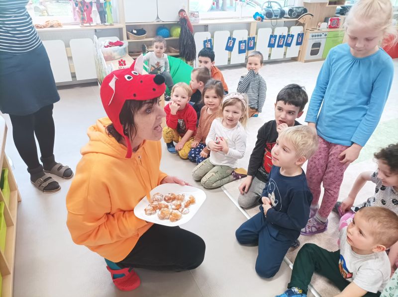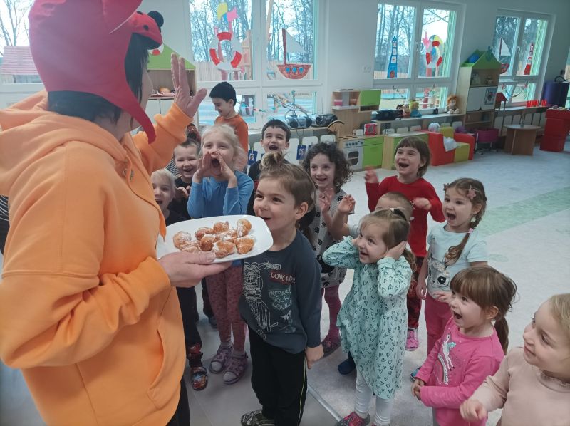 Právě tato písnička se jednoho dne masopustní doby ozývala při dopoledních aktivitách. Ano tušíte správně. Co jiného by se mohlo u této písničky dělat, než smažit koblížky. Děti se dozvěděly a zároveň vyzkoušely, jak a z jakých surovin těsto na koblížky připravit, aby mohly s jeho přípravou poradit doma maminkám. U smažení museli kluci a děvčátka hlídat lišku z pohádky, která si na koblížky dělala chutě. Naštěstí si z plné mísy neodnesla do pohádky ani jeden, protože ji děti vzkázaly: „Bez práce nejsou koláče ani koblížky!“ A tak všechny koblížky zůstaly dětem. Doufáme, že jim doma přišly k chuti.