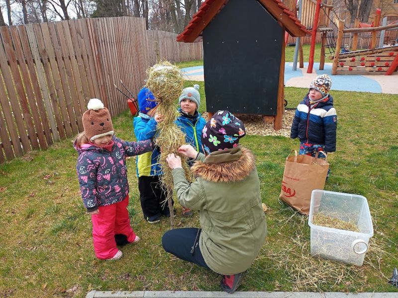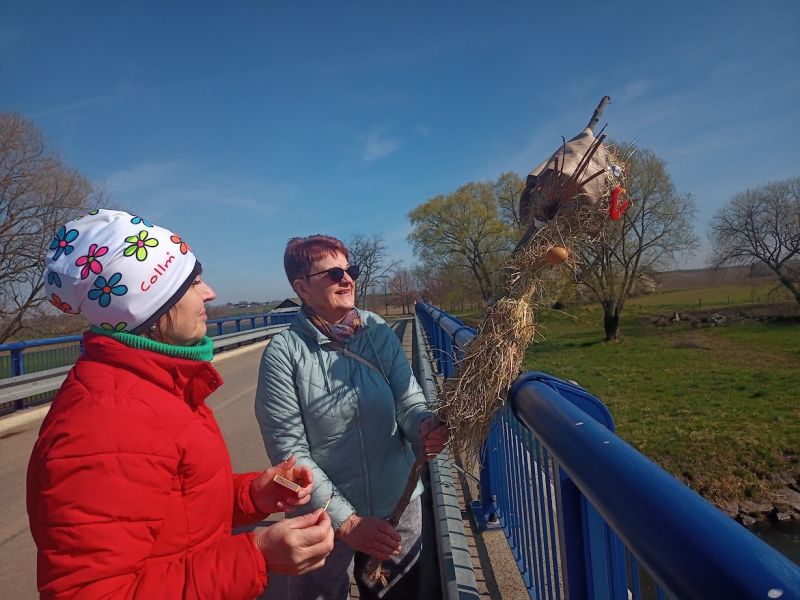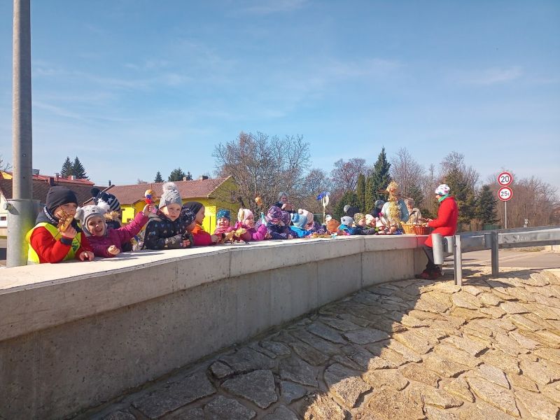 21. března jsme se vydali do Holasovic k řece. Chtěli jsme totiž přivítat první jarní dny a pustit po řece MORENU a s ní malé MORENKY, které jsme si vyrobili. Přestože MORENY tušily, že jejich koupel se blíží, nevyslaly na nás zimní počasí a na cestu nám svítilo sluníčko. Na rozloučenou se zimou jsme si zazpívali i pár jarních písniček a pak už jsme jen sledovali házení MOREN z mostu, u kterého se vystřídaly všechny děti. Pořádně jsme se u toho nasmáli. Máme tady jaro, a tak šťastnou plavbu MORENKY!