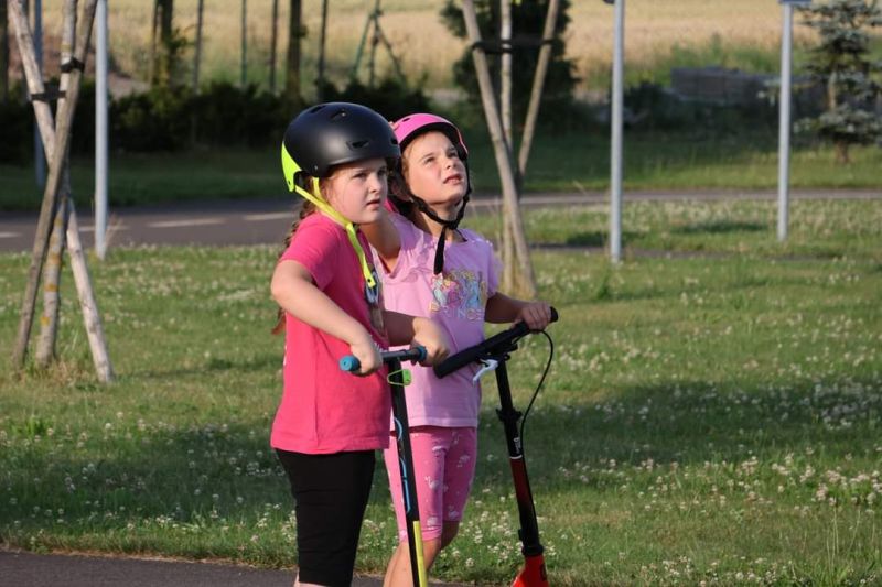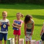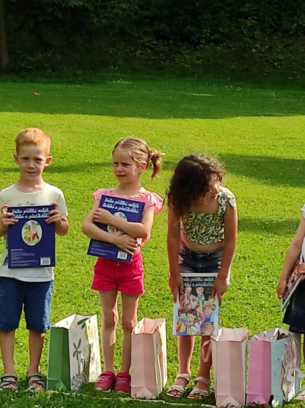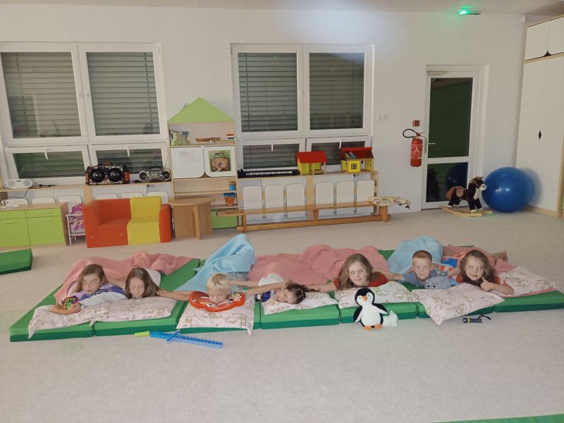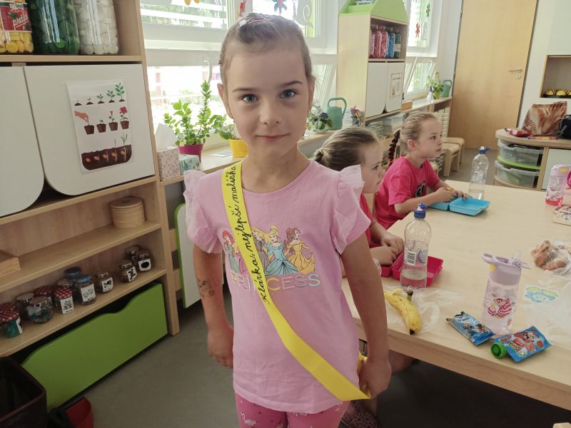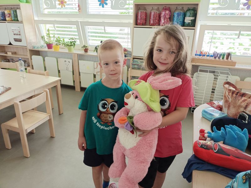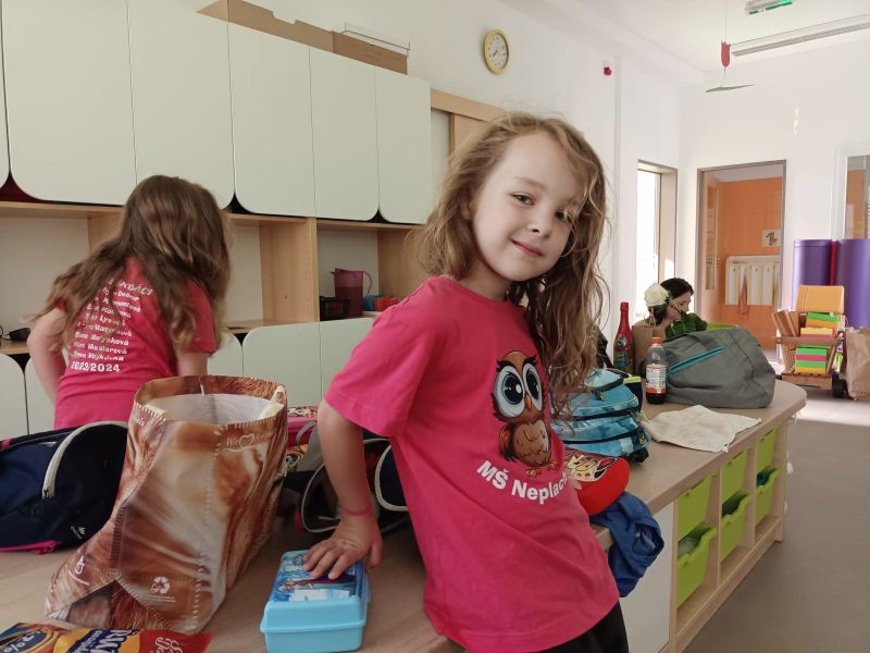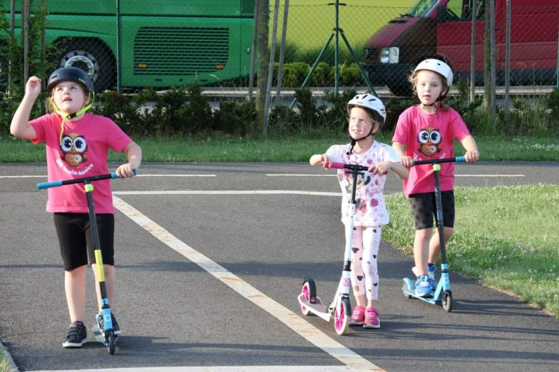 Ani letos jsme nezapomněli na naše předškoláky. Jejich poslední školkové zvonění si užili 19. června se svými nejbližšími a kamarády ze školky. Všech osm předškoláčků se představilo básničkou ušitou každému na míru a jako tanečníci z Pomády zvládli kluci a děvčátka s velkým odhodláním i tento kousek svého programu. To hlavní, co skrývaly dárkové tašky, byly pohádkové knihy s věnováním, které budou dětem připomínat dobu strávenou v mateřince. Odpoledne pak pokračovalo ryze kočičím programem pro všechny děti a bylo plně v režii klaunice Kalimero. K chuti přišly dobrůtky v samoobslužném baru, a kdo chtěl, mohl si vystát frontu u malování na obličej. Loučení s předškoláky však ještě pokračovalo 28. června při nocování ve školce. Pro některé obyčejný den, pro našich 7 odvážlivců v něčem speciální. Asi tušíte v čem. Rozhodli se přenocovat v prostorách školky. Bez maminky, bez tatínka. První bod pátečního programu byla návštěva dopravního hřiště v Malých Hošticích. Už během startování autobusu začalo slzavé údolí. Nemyslete si, neplakaly děti. Ty jen se smíchem prohlašovaly: „Koukejte, moje mamka brečí…..a ta moje taky!“ Na dopravním hřišti si děti s koloběžkami užily spoustu zábavy, ale zároveň v duchu dodržování dopravních předpisů, vždyť měly hřiště jen samy pro sebe. Výlet jsme v autobuse zakončili písničkou Koloběžka. Po společné, různorodé večeři, začala bitva s vodními balónky. A protože vítězem se stal každý, kdo se dal ždímat, čekalo na bojovníky dětské „šampáňo“. Na přání dětí nemohla chybět stezka odvahy, což překvapilo hlavně paní učitelky. Unavení kluci a děvčátka ještě zvládli pohádku na dobrou noc a pak se ukázali jako správná parta. Natlačili si matrace co nejvíce k sobě a za vzájemného tulení usnuli. Ranním „budíčkem“ nastalo to pravé loučení, každý z předškoláků si odnesl svou šerpu a věříme, i spoustu nejen nočních zážitků.