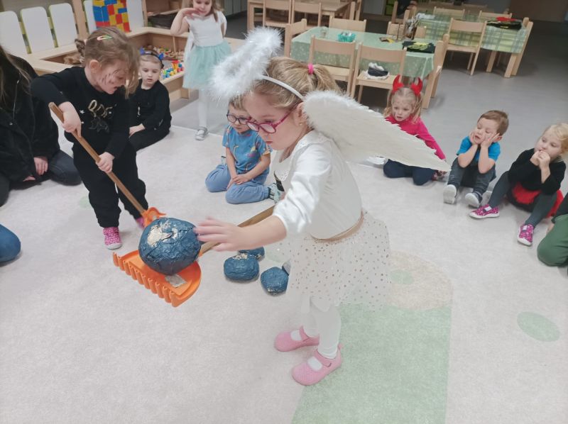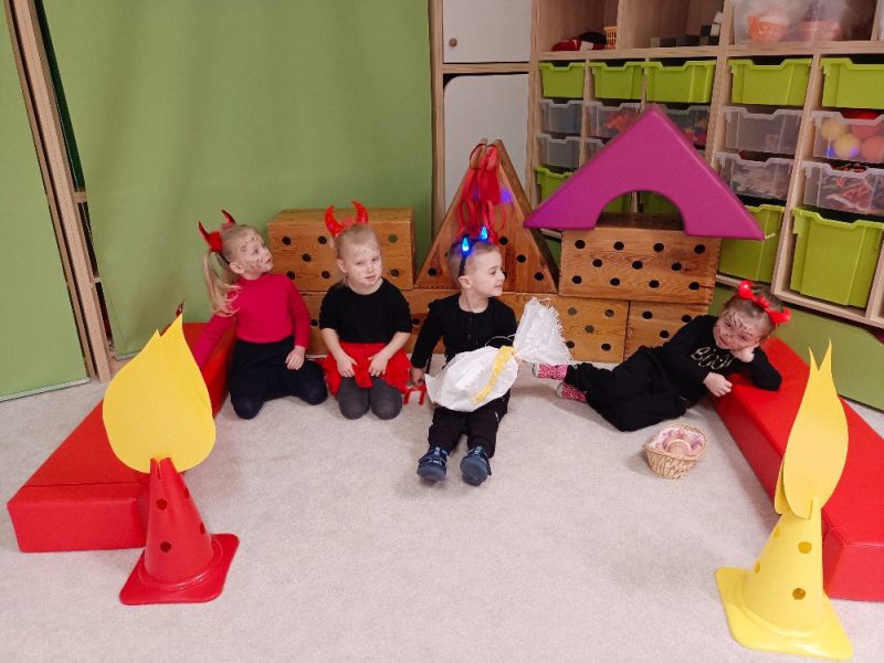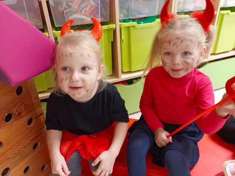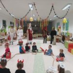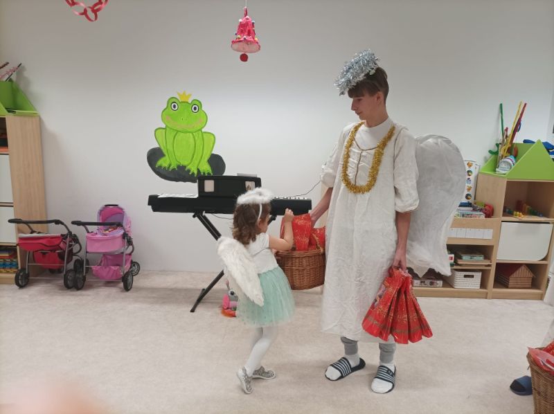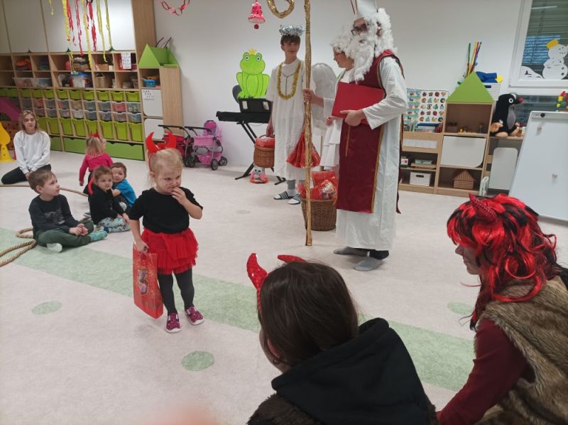 Po krátké návštěvě Mikuláše 6. 12. , který ze svého mikulášského košíku nadělil do posledního balíčku, začala pravá čertovská diskotéka, kterou si kluci a děvčátka sami přáli. Malým čertíkům svítily růžky všemi barvami a světe div se, mezi nimi poletovalo i několik andílků, kteří se snažili mít to čertovské dovádění pod kontrolou. Rozpustilé pekelné písničky zněly jedna za druhou a tanec střídaly netradiční úkoly. Třeba „přenášení“ čertovského plamínku (dospěláci nebojte se, nebyl opravdický), vyhánění lenivého čertíka, hledání kouzelných skleněných kuliček a taky ochutnávka čertího lektvaru. Dopoledne rychle uteklo a rozdováděné děti čekal poslední pekelný taneček, který udělal čertovskou tečku za veselým dopolednem.