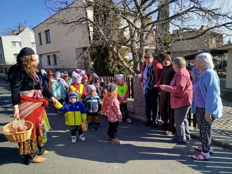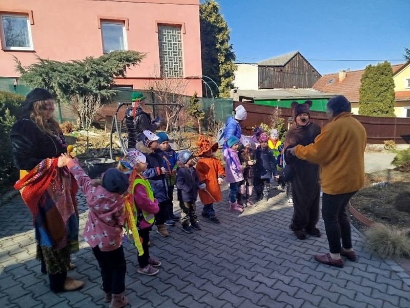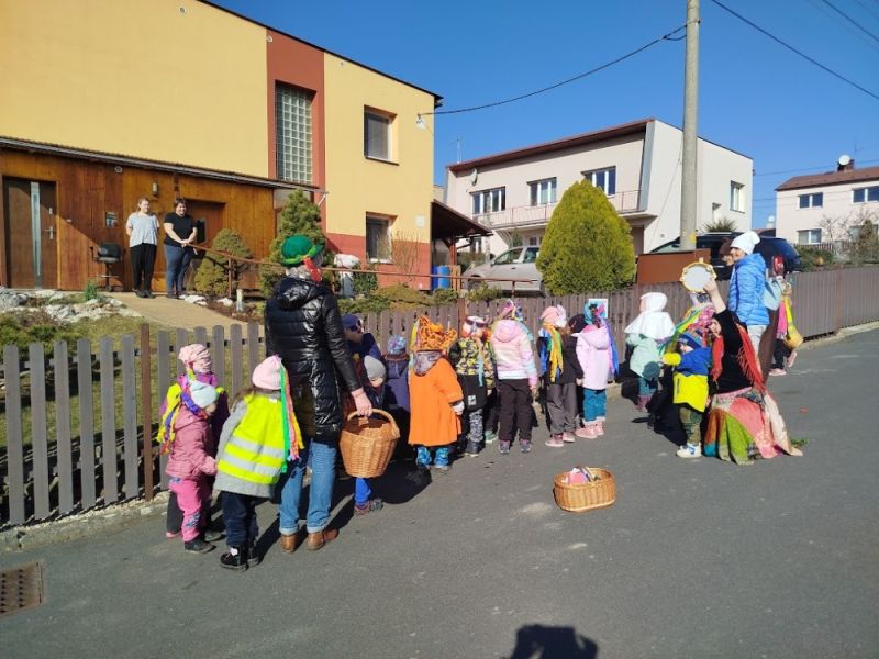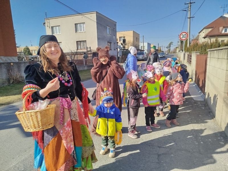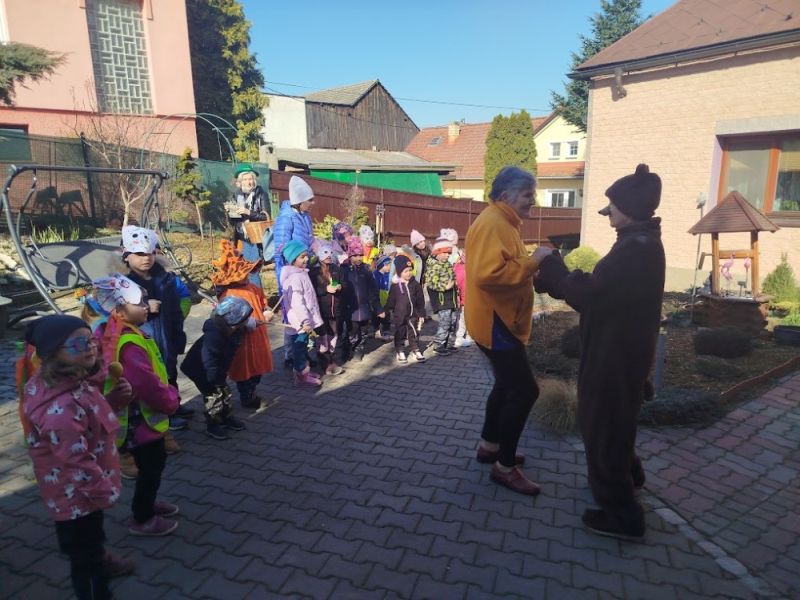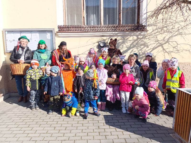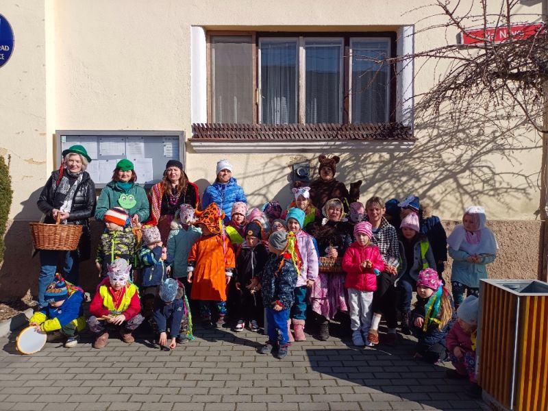 Dětský školkový masopustní průvod se letos vydal vesnicí 7. března. Sluníčko hřálo na cestu, medvědice udávala směr a na kluky a děvčátka v maskách čekali naši „staří dobří známí“, kteří si s dětmi rádi zazpívají, zatančí s medvědicí a poptají se, „co je ve školce nového?“. Všechny mrzelo, že masopustní babička Jana s námi letos jít nemohla, ale velkým překvapením bylo, když na nás s úsměvem čekala Na Návsi. A protože jsme se letos do průvodu vydali v době chřipek, přejeme brzké uzdravení všem, kteří se na nás těšili, ale museli zůstat s chřipkou v posteli. Na shledanou napřesrok.