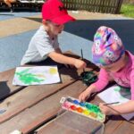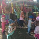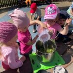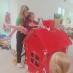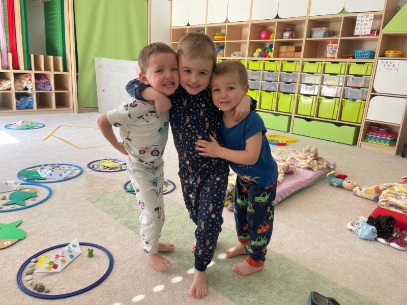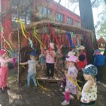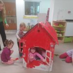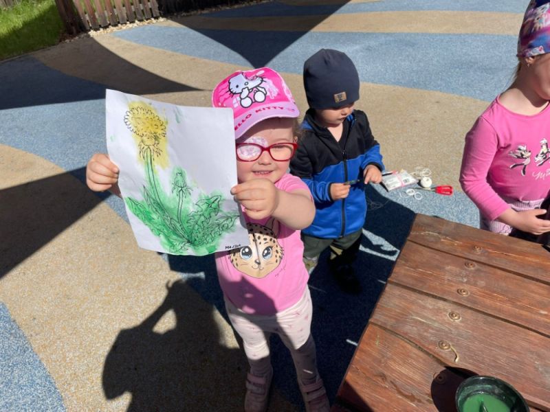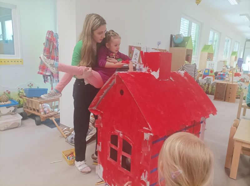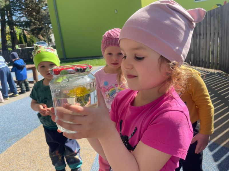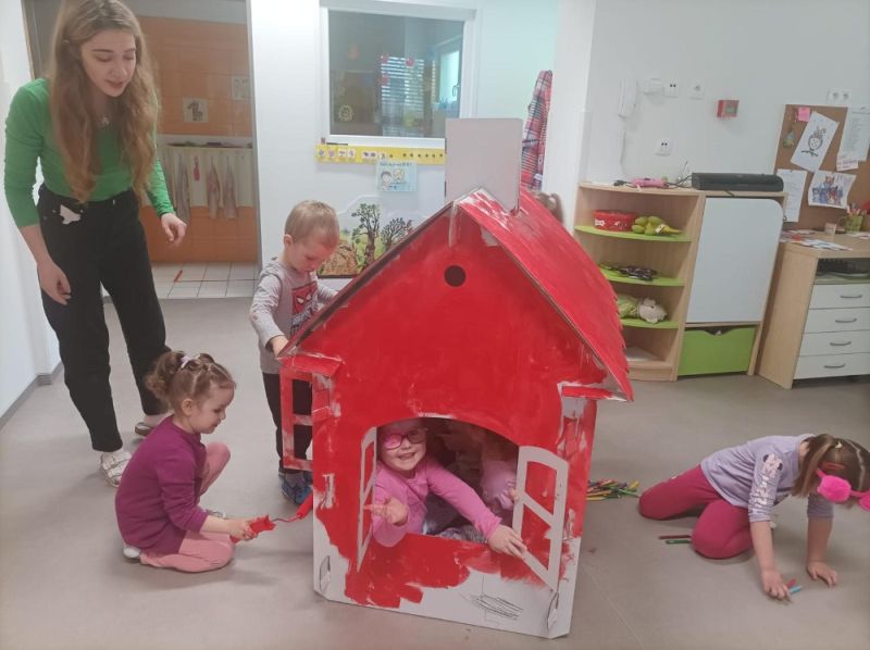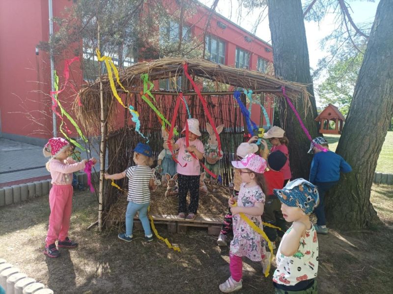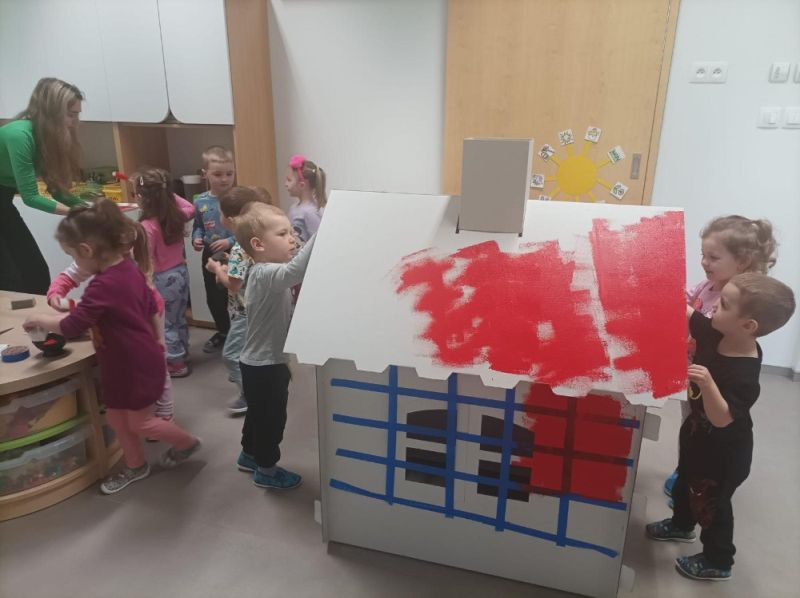 Jaro ve školce jsme přivítali zvesela písní Na jaře, kterou si rádi zpíváme každý den, aby nám krásné jarní počasí setrvalo. Probouzeli jsme nejen jaro, ale také kuřátko z vajíčka, ze kterého se nakonec vyklubal prstík. Různými výtvarnými metodami jsme si spoustu velikonočních vajíček k vyzdobení naší školičky vytvořili. Ať už za pomocí krepového papíru, temperových barev, lepením i stříháním. Děti bavilo modelovat vajíčka z plastelíny a zdobit jich knoflíky. Na konci března na kluky a děvčátka čekalo ve školce překvapení v podobě kartonového domečku, ze kterého měly za úkol udělat cihlový, protože týden o pohádce Tři prasátka by se bez cihlového domečku neobešel. Děti si tak zahrály na malíře a zedníky a z bílého domečku byl rázem domeček, který ani vlk nerozfouknul. Pohádku jsme si také zdramatizovali a doprovodili básničkou Tři prasátka staví dům za pomoci hry na hudební nástroje. Při stavění domečků z párátek a slaďoučkých křupek zaměstnaly děti nejen ruce, ale taky pusy. Grafomotorický cvik ve tvaru ulity si děti procvičily v týdnu Šnečku, šnečku, vystrč růžky. Obzvláště děvčátka bavilo zdobení šneččích ulit fixami, ke kterým pak vymodelovaly tělíčka z plastelíny. A protože malých zvířátek není nikdy dost, se stonožkou Ponožkou, dováděly děti následující týden. Zábavnou formou se naučily ponožky prát, sušit, ale také skládat. Věříme, že od této doby plnohodnotně zastupují v této činnosti maminky. A aby stonožce Ponožce nebyla zima, vyzkoušeli si kluci a děvčátka svou trpělivost při provlékání dírek bavlnkou, zkrátka upletených ponožek není nikdy dost. V pampeliškovém týdnu se všichni dozvěděli, že pampelišky slouží nejen k výrobě medu, či sladkého sirupu, ale dá se s nimi také skvěle malovat, když dojde žlutá barvička. Konec měsíce dubna jsme završili tvořením soviček, protože letošní školková májka je celá v sovičkovém duchu.