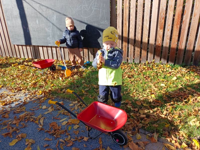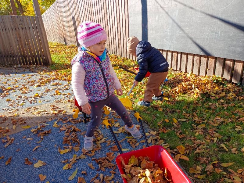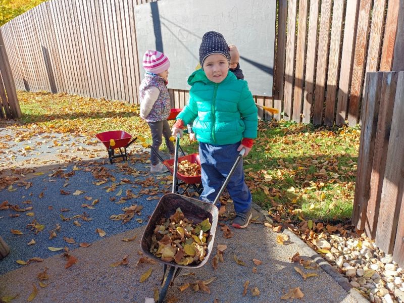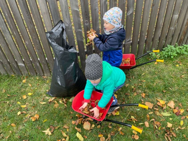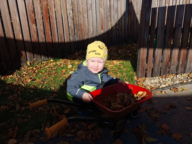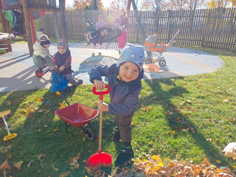 Podzim nám do zámeckého parku a školní zahrady přinesl spoustu barevného listí, které šustí pod nohama a dělá krásný podzimní koberec. A když zrovna nefouká vítr, děti si tento originální koberec zvládnou rozfoukat samy. Na naší školní zahradě nás hrabání listí neminulo. I malí pomocníci zastanou spoustu práce a když jde s chutí a úsměvem, jsou za chvíli pytle s listím plné a připravené k odvozu. Naše zahrada tak prokoukne a pak je i čas na skákání do hromady listí, kterou jsme si za odměnu nechali pro zábavu.