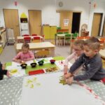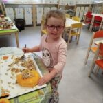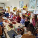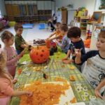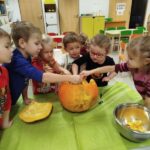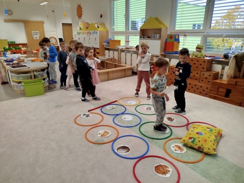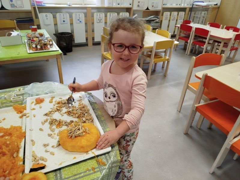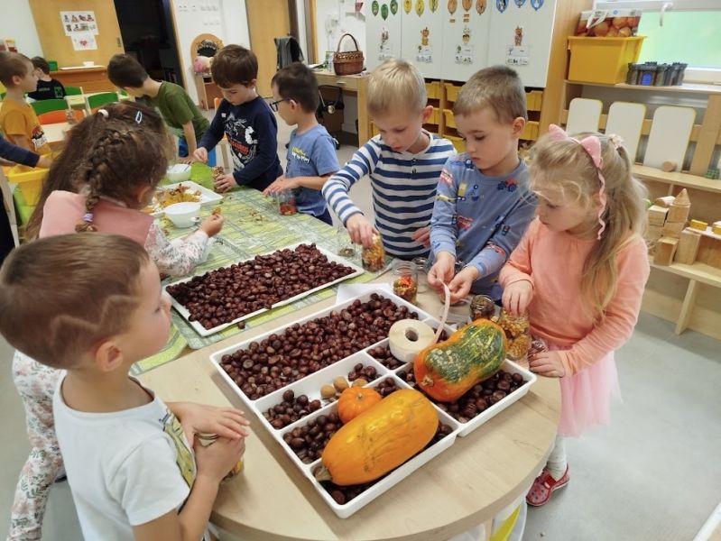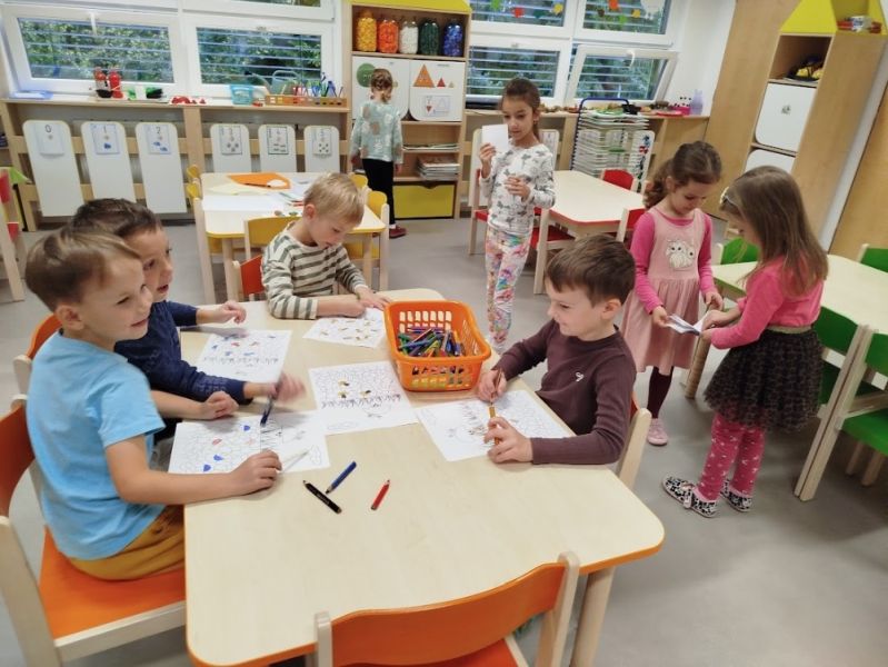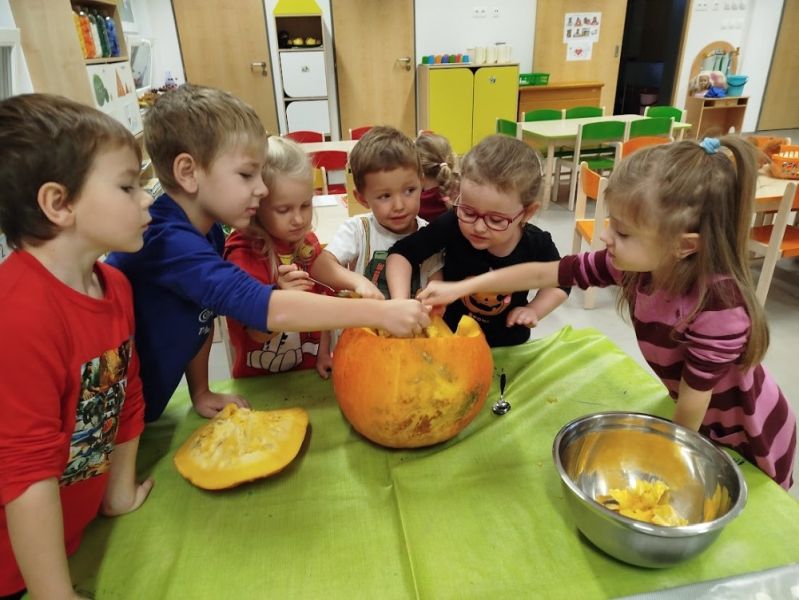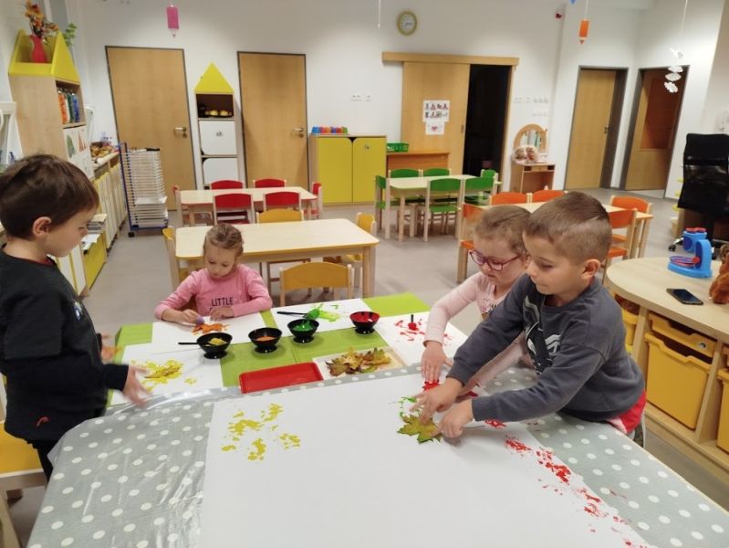 Se svátkem svatého Václava k nám přišel podzim v celé své kráse. Děti se vydaly objevovat, jak příroda souvisí s tradicemi a jaké poklady ukrývá les i zahrada. Na vycházkách sbíraly kaštany, žaludy, šišky i barevné listy. Zkoumaly houby, učily se rozpoznávat jedlé od jedovatých a zjistily, že i z obyčejného houbového výtrusu může vzniknout kouzelná kresba. Když pak ve třídě tvořily muchomůrky z papíru, modelíny a nasbíraných přírodnin, všude to vonělo podzimem a fantazií. Veverka, která děti provázela při hrách, je naučila rytmizovat a cítit rytmus v pohybu i v řeči – a tak se z rytmizace stala radostná hudební hra, která doprovázela i jejich kroky na vycházkách. Podzimní dobrodružství vyvrcholilo strašidýlkovým dnem a oslavou Halloweenu. Děti vydlabaly dýni, která se pak proměnila ve světýlko vítající všechny příchozí před školkou. Společně navštívily i místní kostel a hřbitov, kde zapálily svíčku na hrobu. A protože bez pohybu by to nebylo ono, z papíru si vyrobily létající netopýry a zkoušely, komu budou mávat křídly nejrychleji. Podzim u nás zkrátka nebyl jen barevný, ale také plný poznání, tvoření a radosti z každého nového objevu.