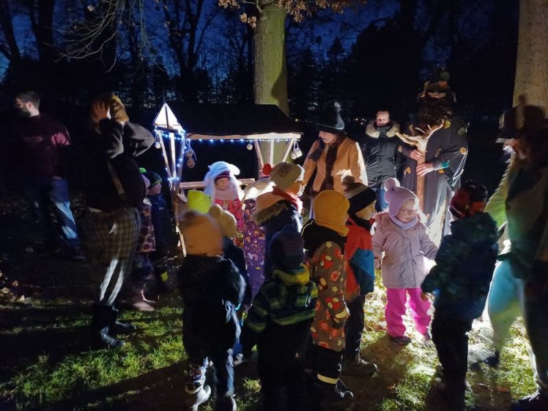 Na cestu do KRKONOŠSKÉ POHÁDKY pozvaly děti své rodiče, aby s nimi prožili nejen radost z pohádky, ale zároveň si společně vychutnali školkovou adventní atmosféru. Děti se celý týden těšily na Krakonoše, který přijal naše pozvání, aby vyčinil Trautenberkovi. Ten tentokrát Krakonoše rozhněval, protože nechtěl dát zvířátkům jídlo na zimu. Jenže na vládce hor bývá Trautenberk krátký a tak se zvířátka v neplachovském parku dobrůtek dočkala. A nejen dobrůtek. Děti zvířátkům ozdobily vánoční stromečky, Krakonoš vyčaroval z brusu nový krmelec, aby všichni živí tvorové v parku mohli s plnými bříšky oslavit vánoce. Nechybělo ani vánoční pozdravení od dětí a společný taneček. Krakonoši, děkujeme za Tvou vzácnou návštěvu u nás.