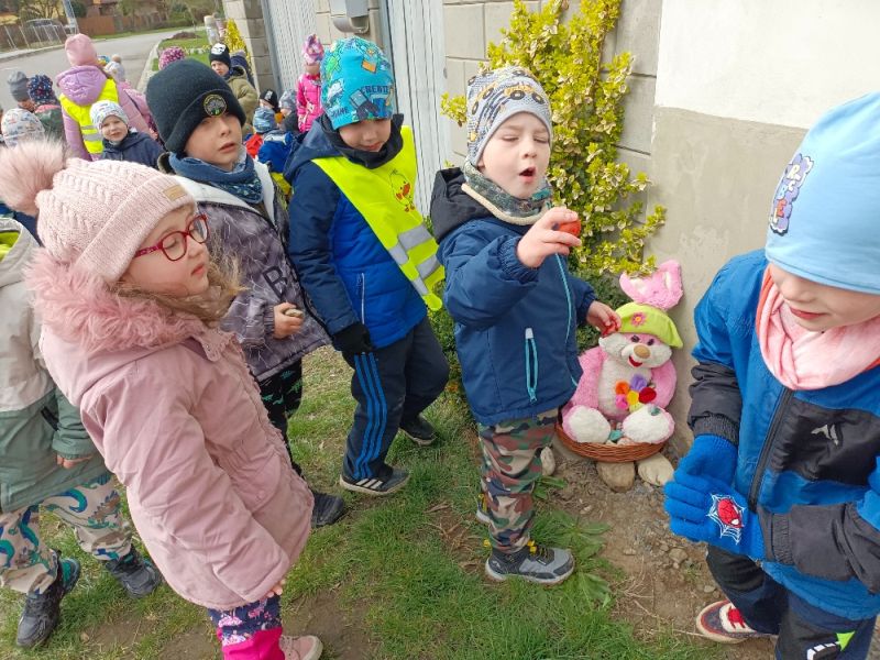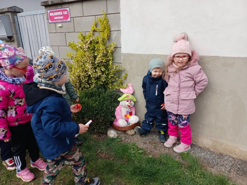 Chladné počasí nás v posledních dnech provází čím dál více, a proto jsme se rozhodli jaru trochu pomoci. S mladšími a staršími dětmi jsme vyrobili Moranu, kterou jsme společně odnesli k řece v Holasovicích, a tam ji vhodili do vody. Za doprovodu krátké říkanky a společného odpočítávání jsme sledovali, jak odplouvá po proudu. Tímto jsme se symbolicky rozloučili se zimou. Cestou jsme u jednoho domečku objevili velikonočního zajíčka, který byl smutný, protože kolem sebe neměl žádné barevné okolí. Děti se proto rozhodly mu udělat radost. Každý si vybral okrasný kamínek a pomocí akrylových fixů ho barevně pomaloval. Poté ho odnesl k zajíčkovi a popřál mu krásné Velikonoce. Za odměnu dostaly děti od zajíčka malou sladkost, která je velmi potěšila. Při zpáteční cestě se na nás usmálo sluníčko a doprovázelo nás po zbytek dne. Doufáme, že jsme zimu už definitivně odehnali, a těšíme se na jarní počasí i další společná dobrodružství.
